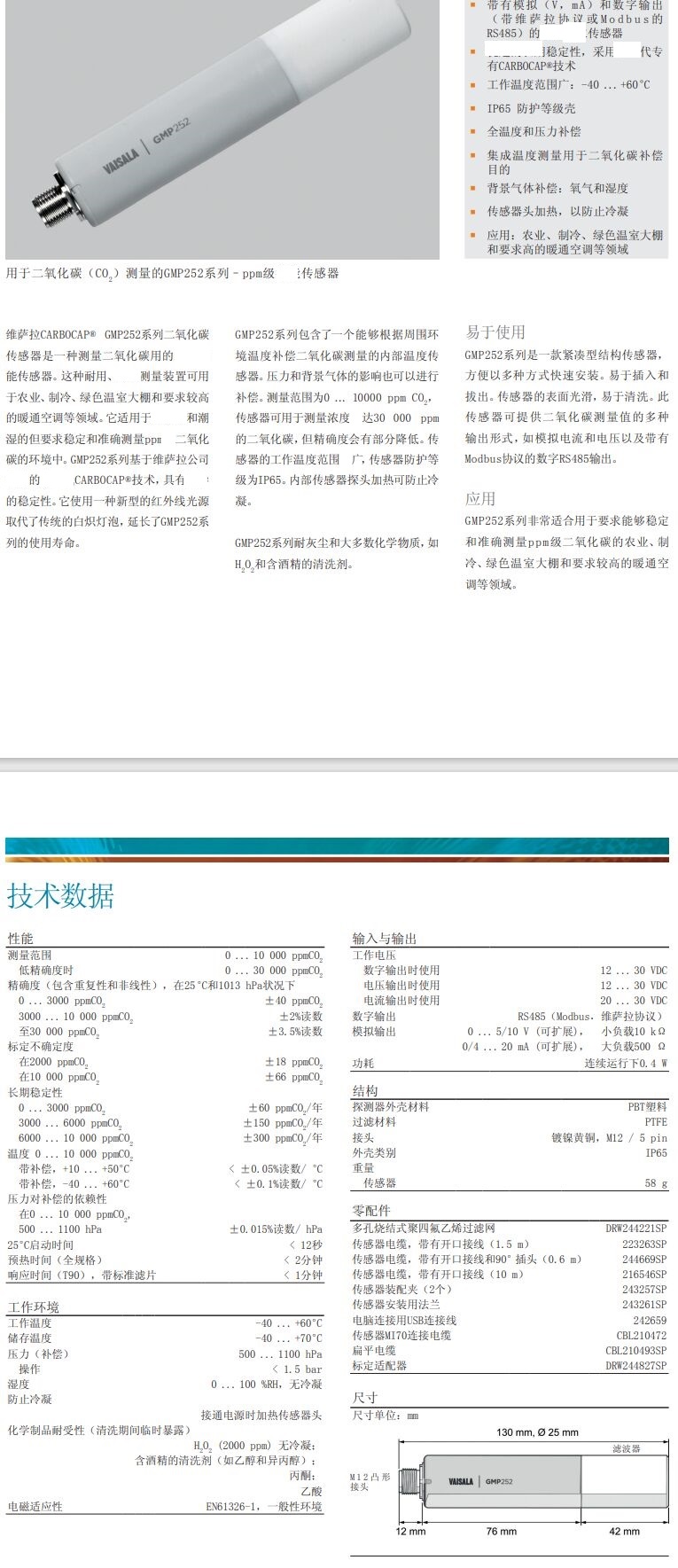 用于ppm测量的GMP252系列二氧化碳传感器