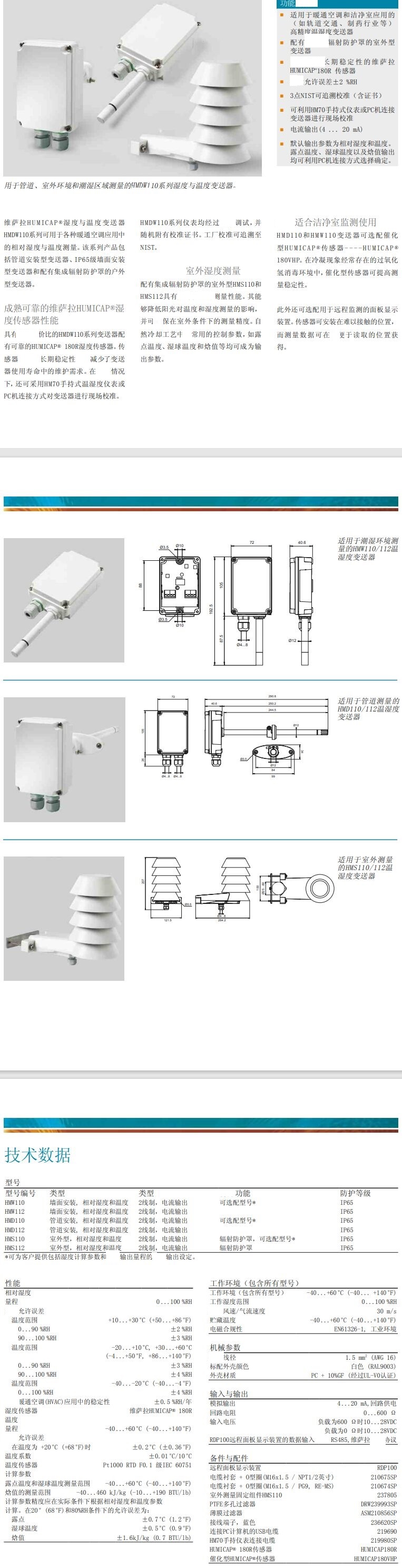 暖通空调应用的HMDW110温湿度测量